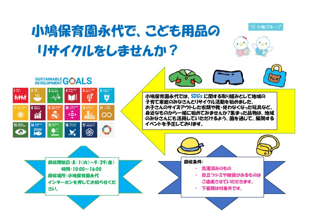 また、SDGsに関する取り組みとして、子ども用品リサイクル活動等も受け付けております。