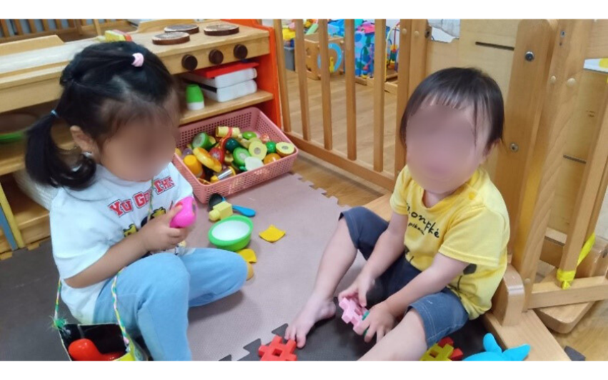 子どもたちは、好きなおもちゃを自分で選び、思い思いに遊びを広げています。
