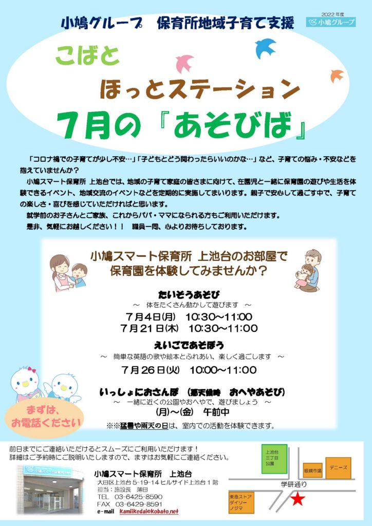 【地域子育て支援】上池台の 「こばと ほっと ステーション」 へ是非お越しください!!