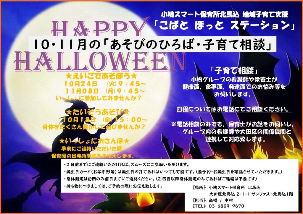 <地域子育て支援>10月・11 月の「あそびのひろば・子育て相談」のご案内(こばとほっとステーション)
