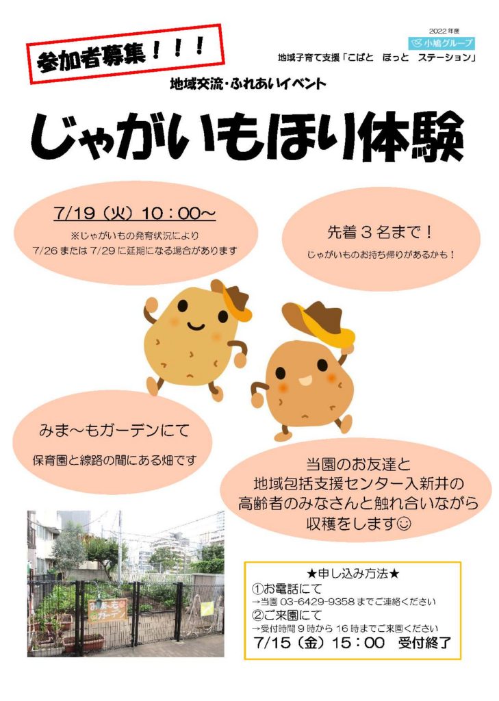 地域子育て支援【7/19実施決定、受付終了】じゃがいもほりのご案内
