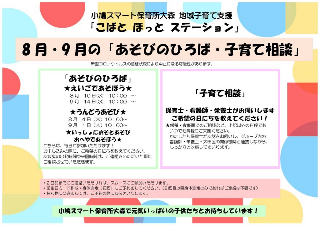 地域子育て支援【こばとほっとステーション】8月・9月のあそびのひろば