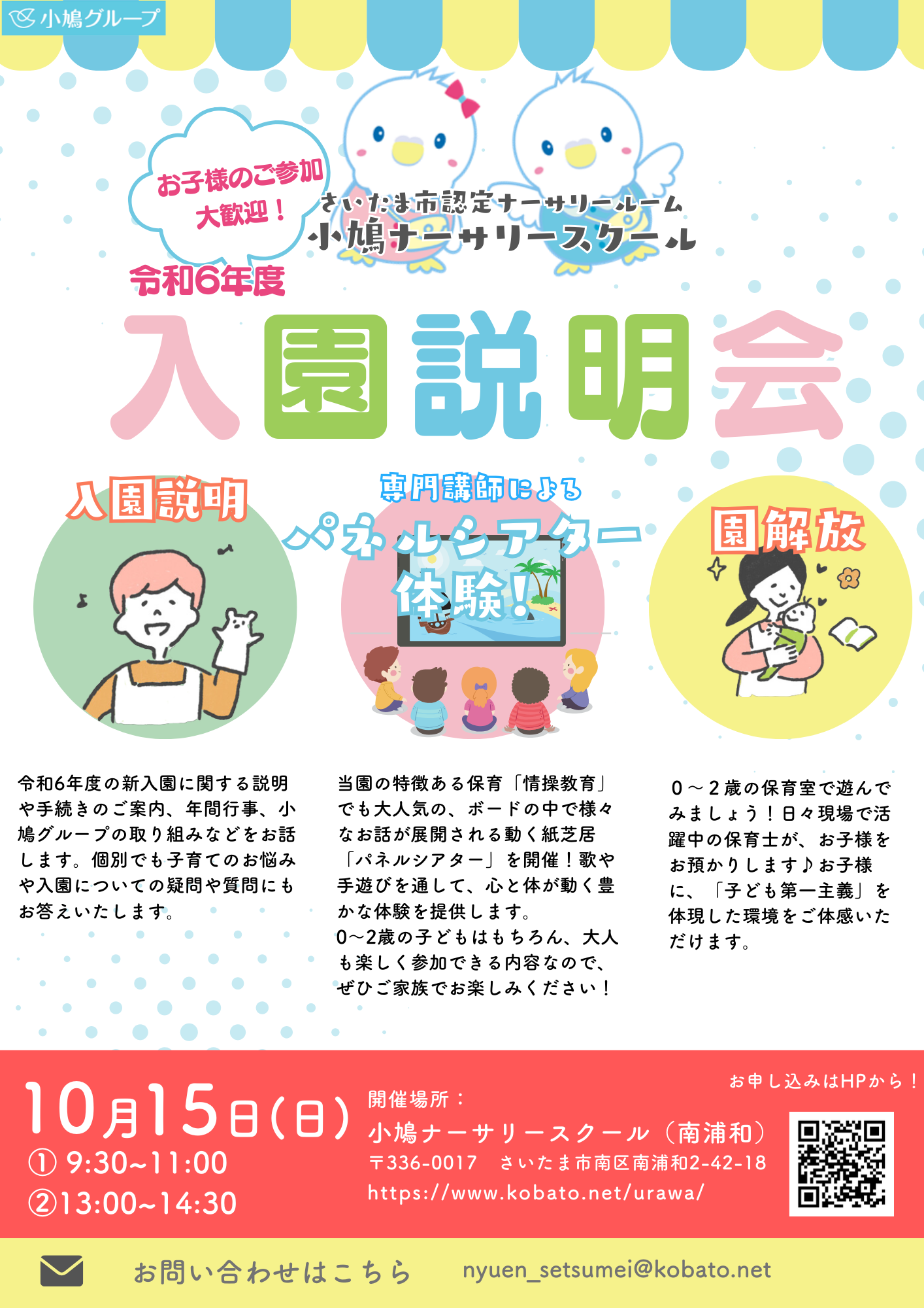 10月15日(日)に小鳩ナーサリースクールの入園説明会を開催いたします。