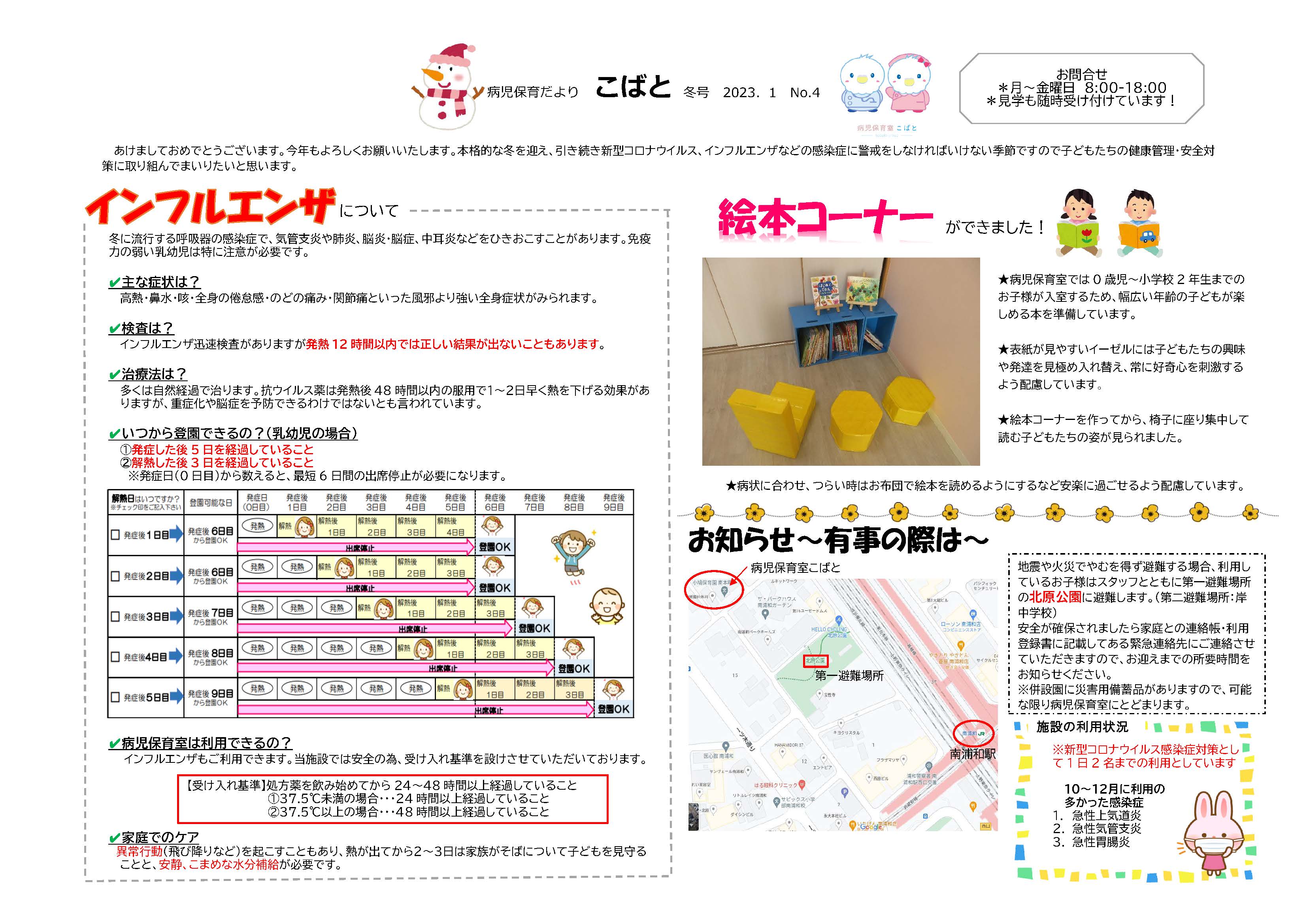 病児保育だより こばと 令和4年度冬号を配信いたします。