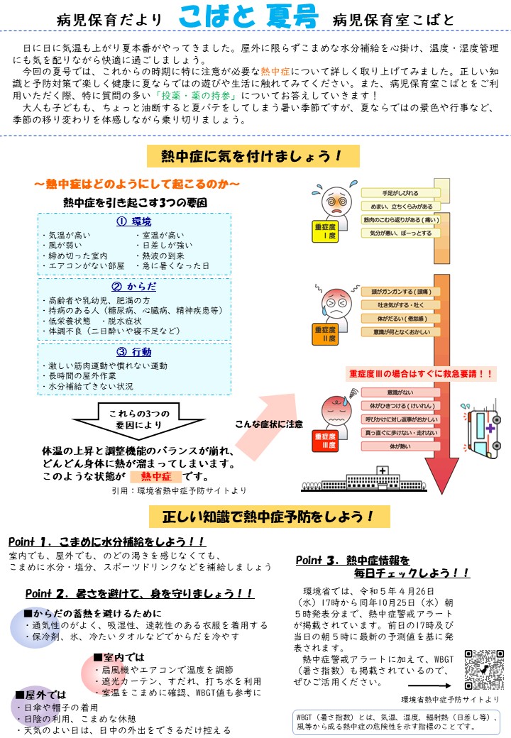 病児保育だより こばと 令和5年度夏号を配信いたします。